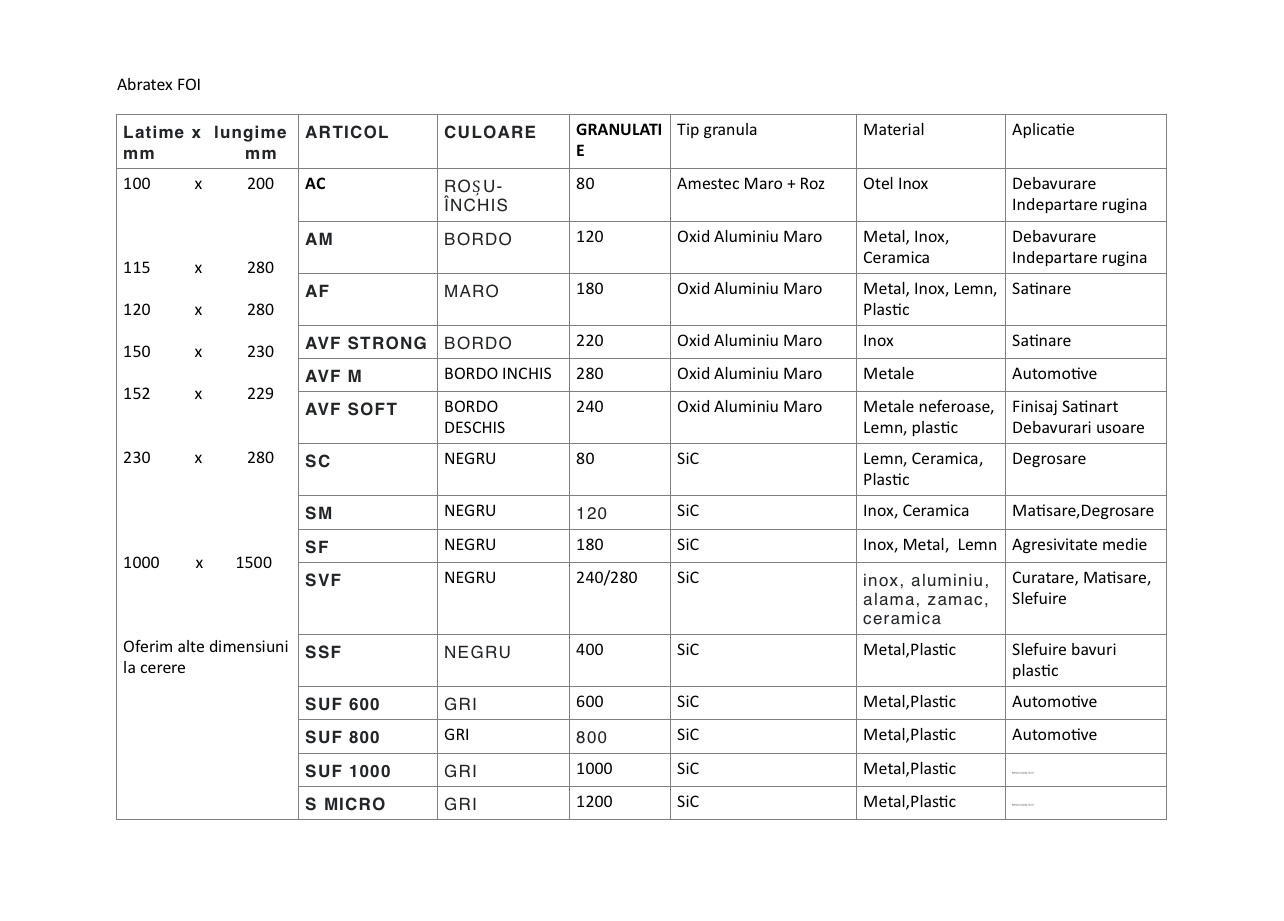 Foile nețesute tip Abratex sunt fabricate din fibre sintetice nețesute, combinate cu granule abrazive prin intermediul rășinii. Rezistent la apa si lubrifianti, au adaptare buna la conturul suprafetelor, sunt confortabile si nu se colmateaza.
